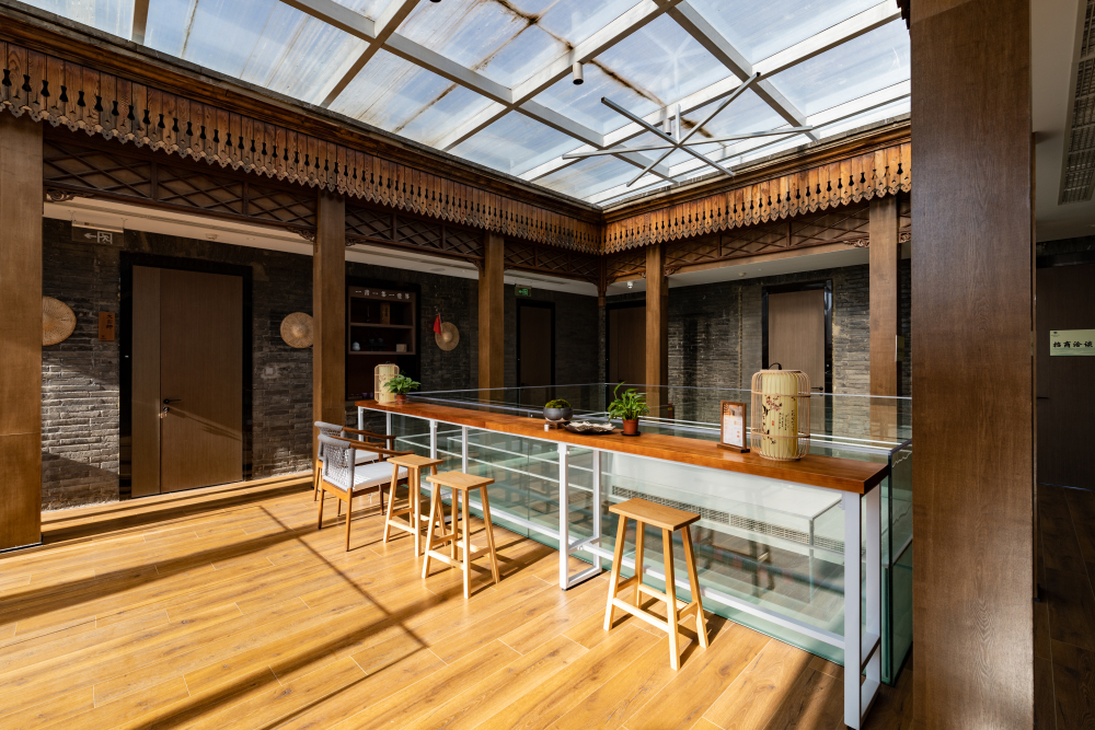 此方案中,采用了中式茶室裝修搭配,古風古韻,仿明清的紅木桌椅,低調又有內涵,對色彩的使用十分考究,木色的裝飾風格,營造出光與影的朦朧氛圍,令人心曠神怡。
