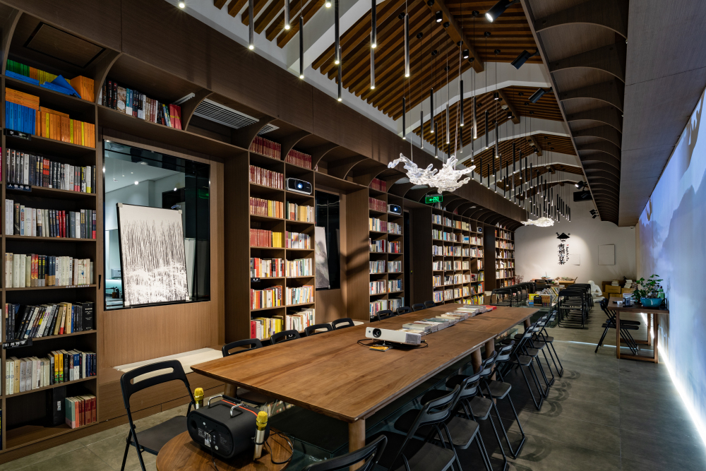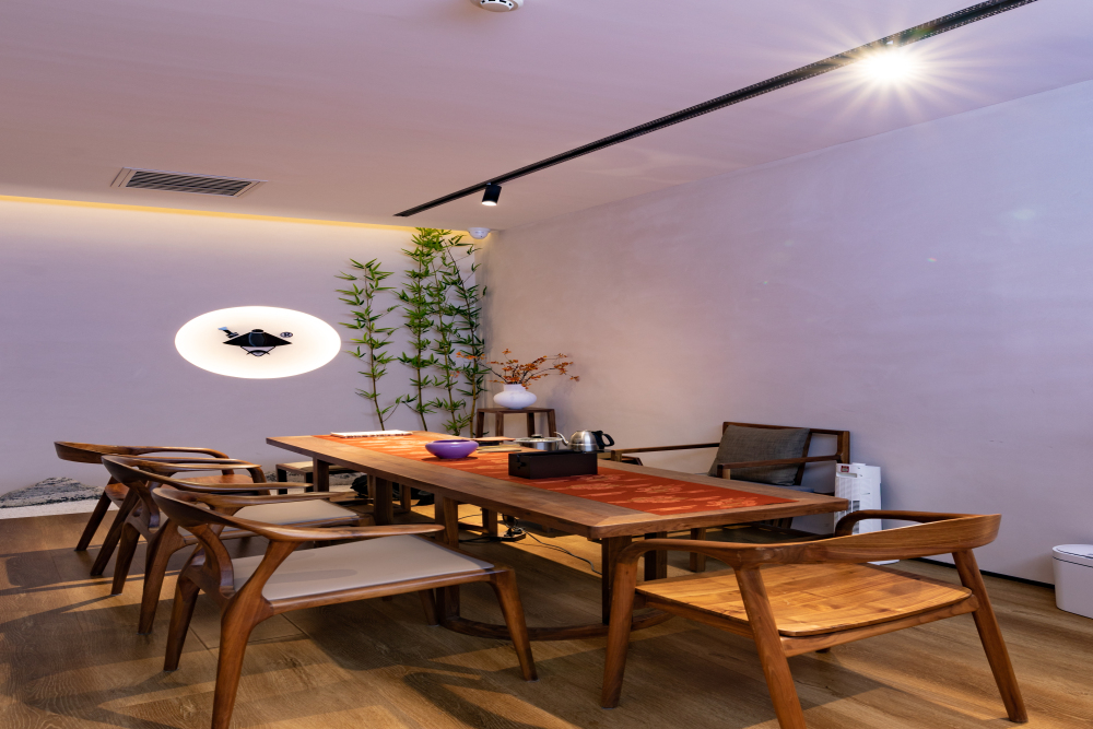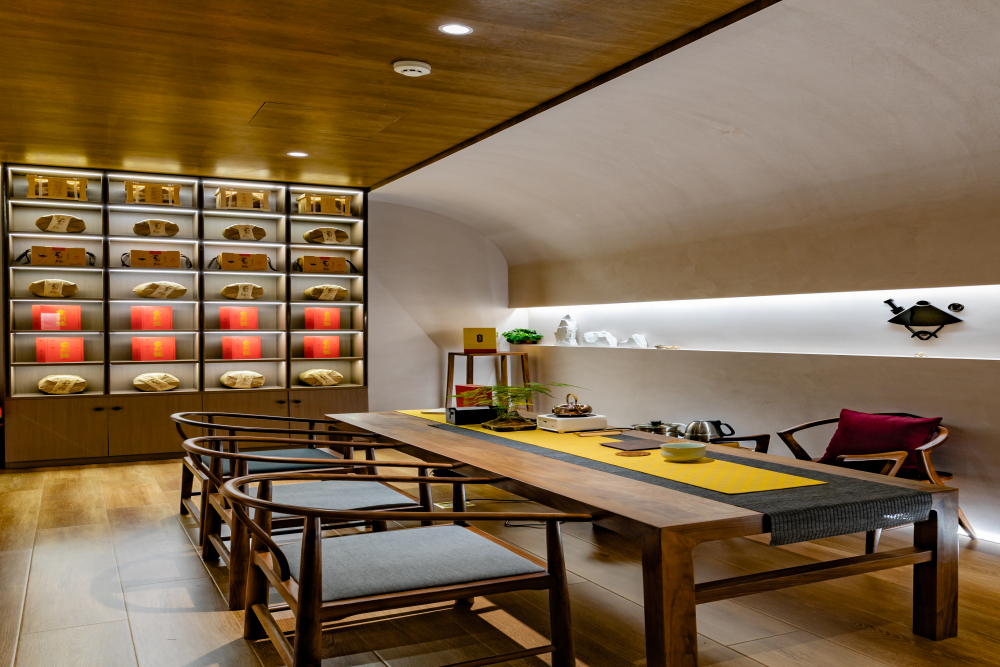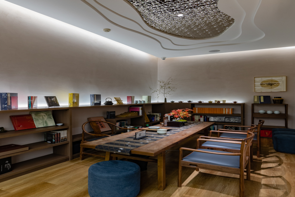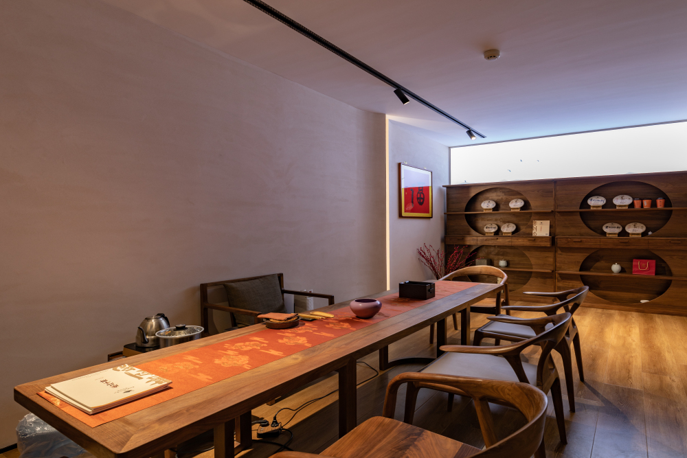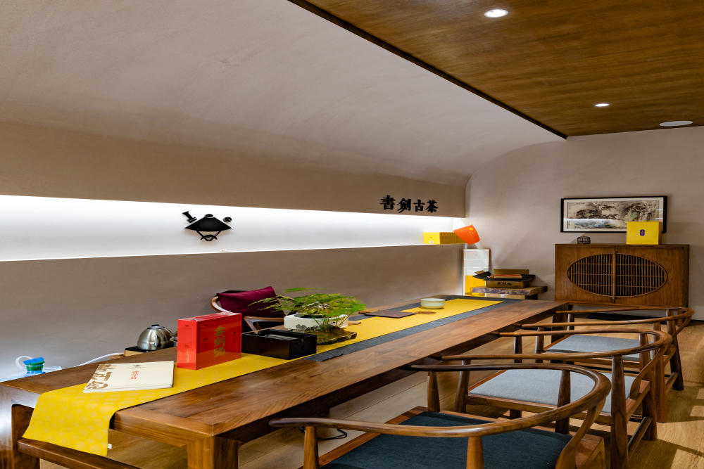 在古色生香的茶室中,添置幾把復古的桌椅、素雅的書法畫作,紫砂陶器茶煙裊裊,飲茶會友,詩情畫意,令人怡然自得。