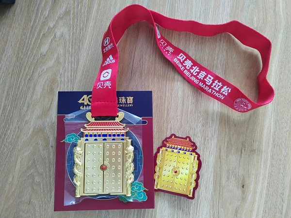 作為同州優(yōu)秀設(shè)計(jì)師,胡玲對這枚獎牌愛不釋手。她稱,獎牌以賽事起點(diǎn)天安門為設(shè)計(jì)元素,另增添手動“開合城門”之設(shè)計(jì)亮點(diǎn),整體以耀眼金、中國紅、深邃藍(lán)為設(shè)計(jì)主色,盡顯古都神韻。