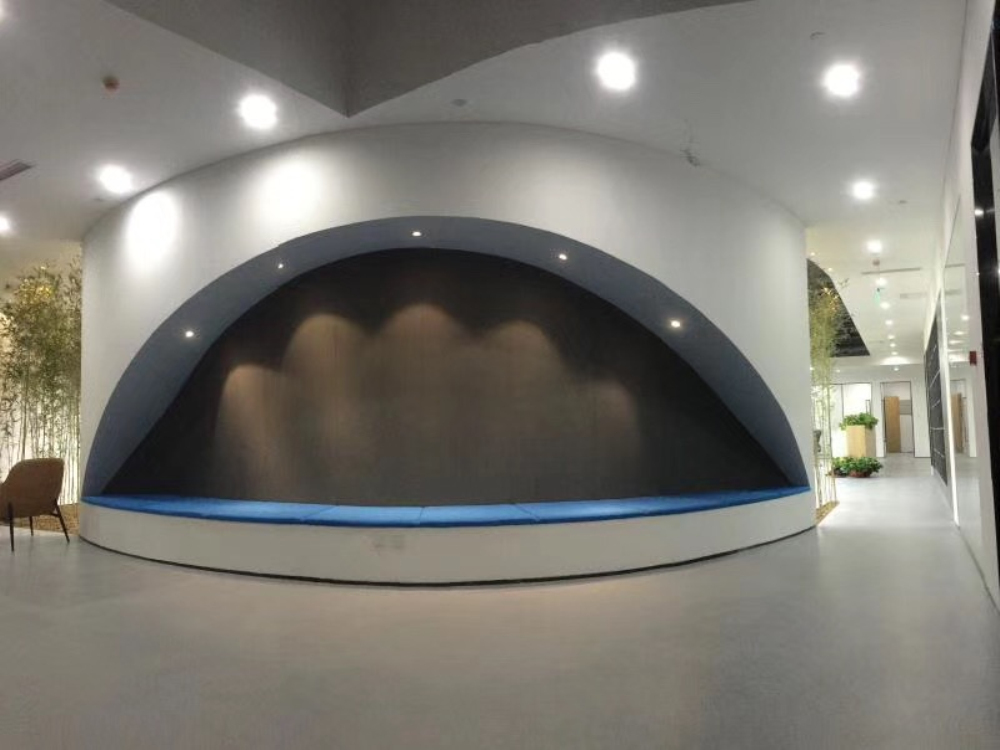 造型上打破常規(guī),弧形背景墻給人眼前一亮隔的感覺,色彩設(shè)計上比較簡潔,巧妙地融入了自然竹子造景,使用竹子和其他材質(zhì)相呼應(yīng),室內(nèi)色彩純凈,氛圍悠閑,創(chuàng)造一個安靜的公共空間,提供更好的工作環(huán)境。